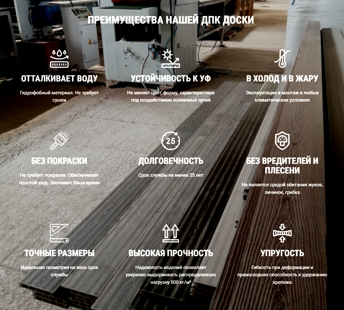 Не дает усадки, не подвержена ультрафиолетовому излучению. Доска в наличии.